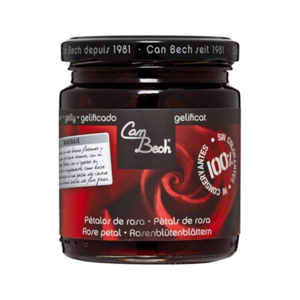 Delicada y sofisticada, esta jalea está elaborada con pétalos de rosa naturales, ofreciendo un sabor fresco, floral y sutilmente aromático. Es un auténtico tributo de Can Bech a la belleza de las flores, convertido en una experiencia gastronómica única.